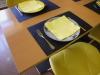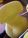 26 (vinte e seis) cadeiras, com pés em madeira, estrutura metálica e estofos em napa amarela, em bom estado de conservação.
