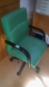 – 1 Cadeira em madeira de cerejeira e pele com braços e rodas;