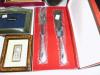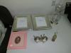 Peças em prata , outras peças em vidro e madeira com aplicações em prata