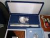 Cunjunto peças em prata ou peças em vidro e madeira com aplicações de prata.