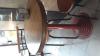 Características: Cinco mesas redonda em madeira e com pé em metal